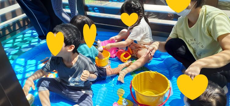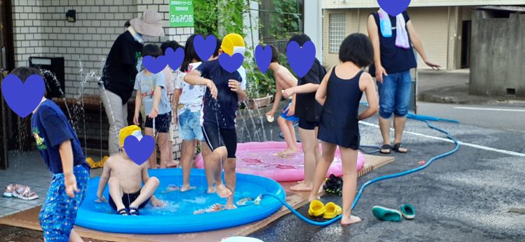 暑いので外でみんなで水遊びをしました( ^)o(^ )