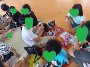 お部屋にレジャーシートを敷いてみんなでおにぎりを頂きました。