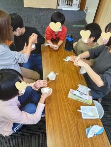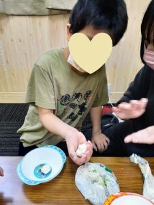 子どもたちが丸め終えたら職員とバトンタッチし、