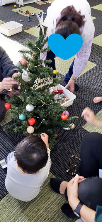 「ふぁみりあ」のクリスマスツリーには、みんなでいろんな飾りつけをして完成させました(^_-)-☆