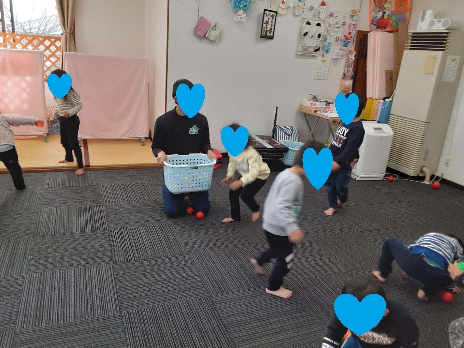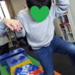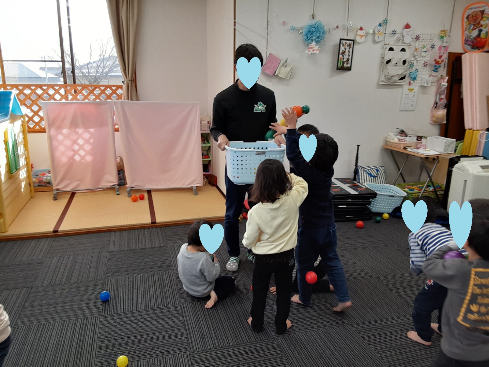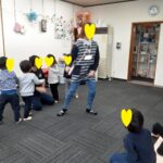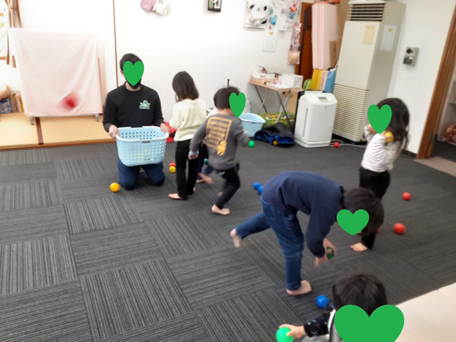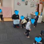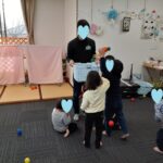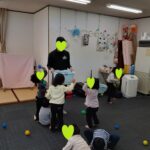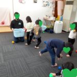 ゲーム遊びでは、コーチと玉入れ遊びを行い楽しく参加していました(^_-)-☆