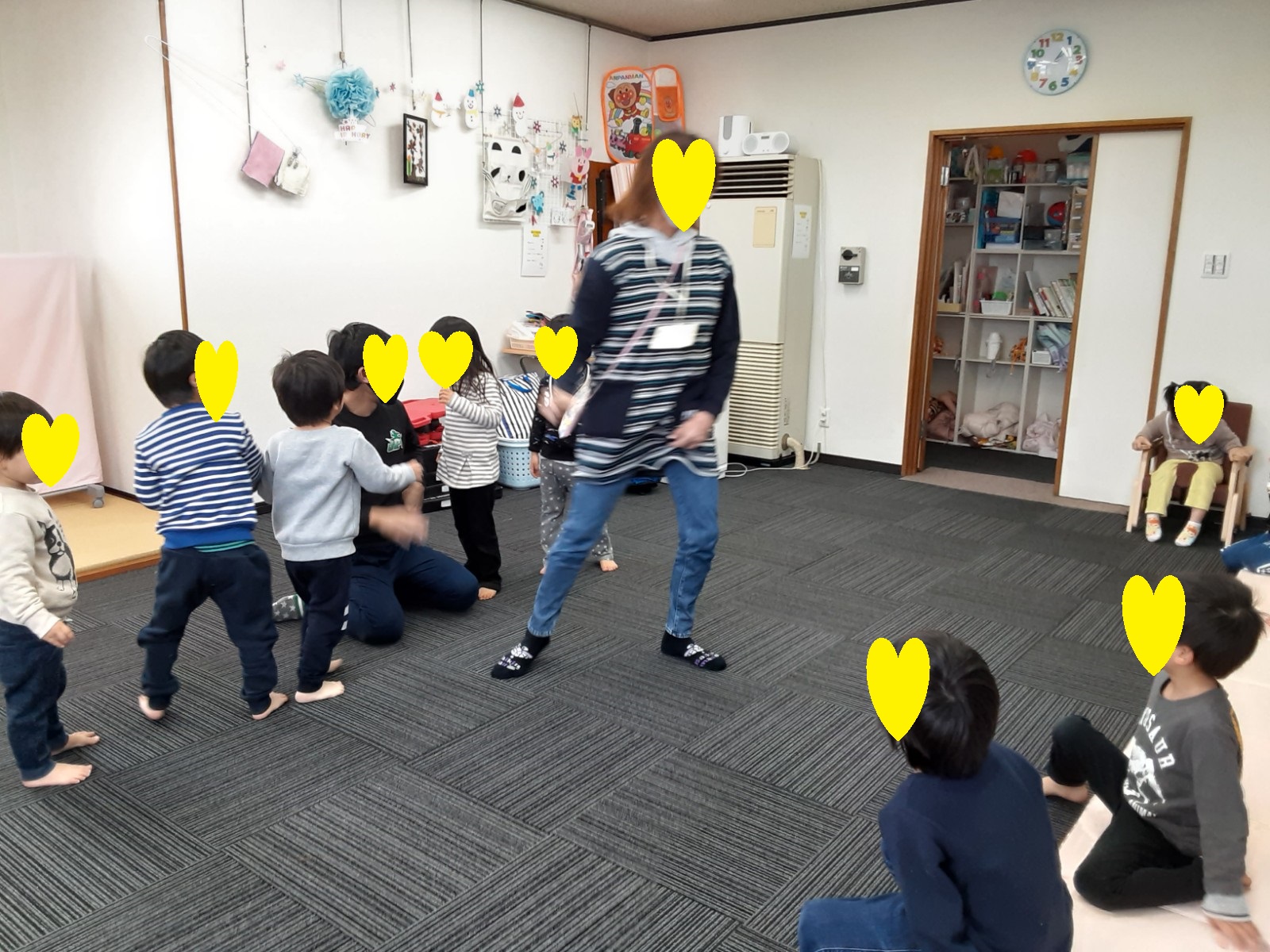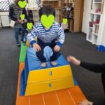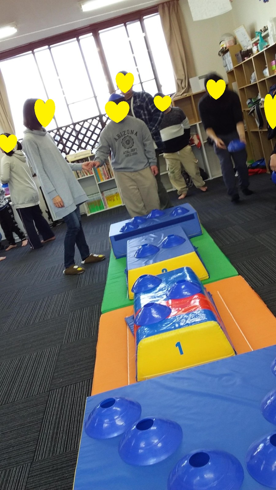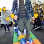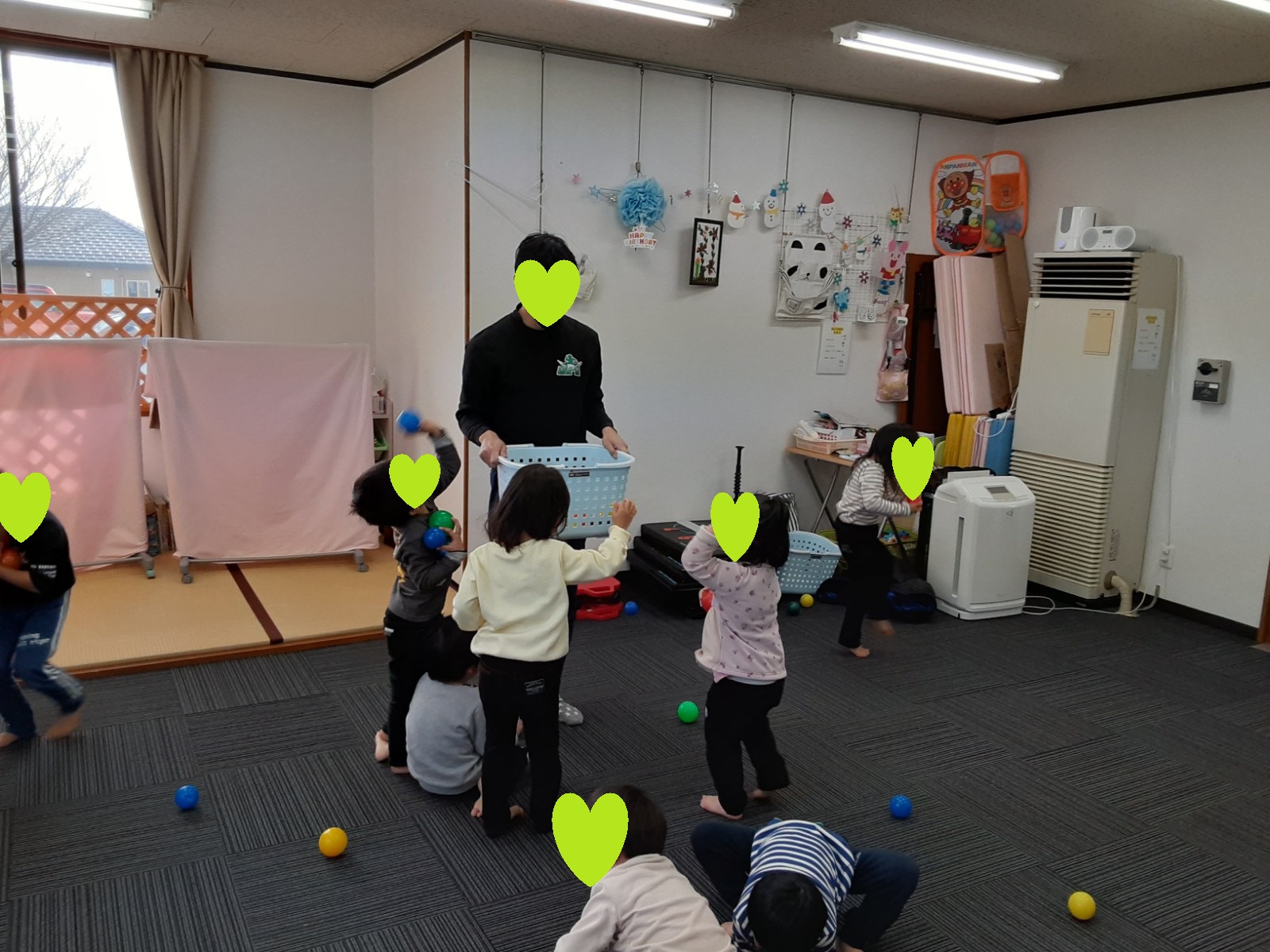 ゲーム遊びでは、コーチと玉入れ遊びを行い楽しく参加していました(^_-)-☆