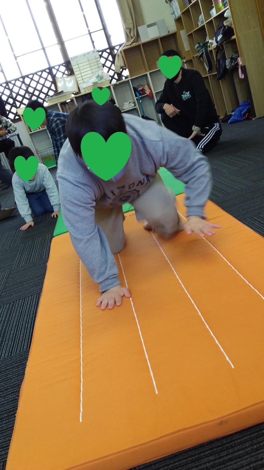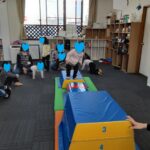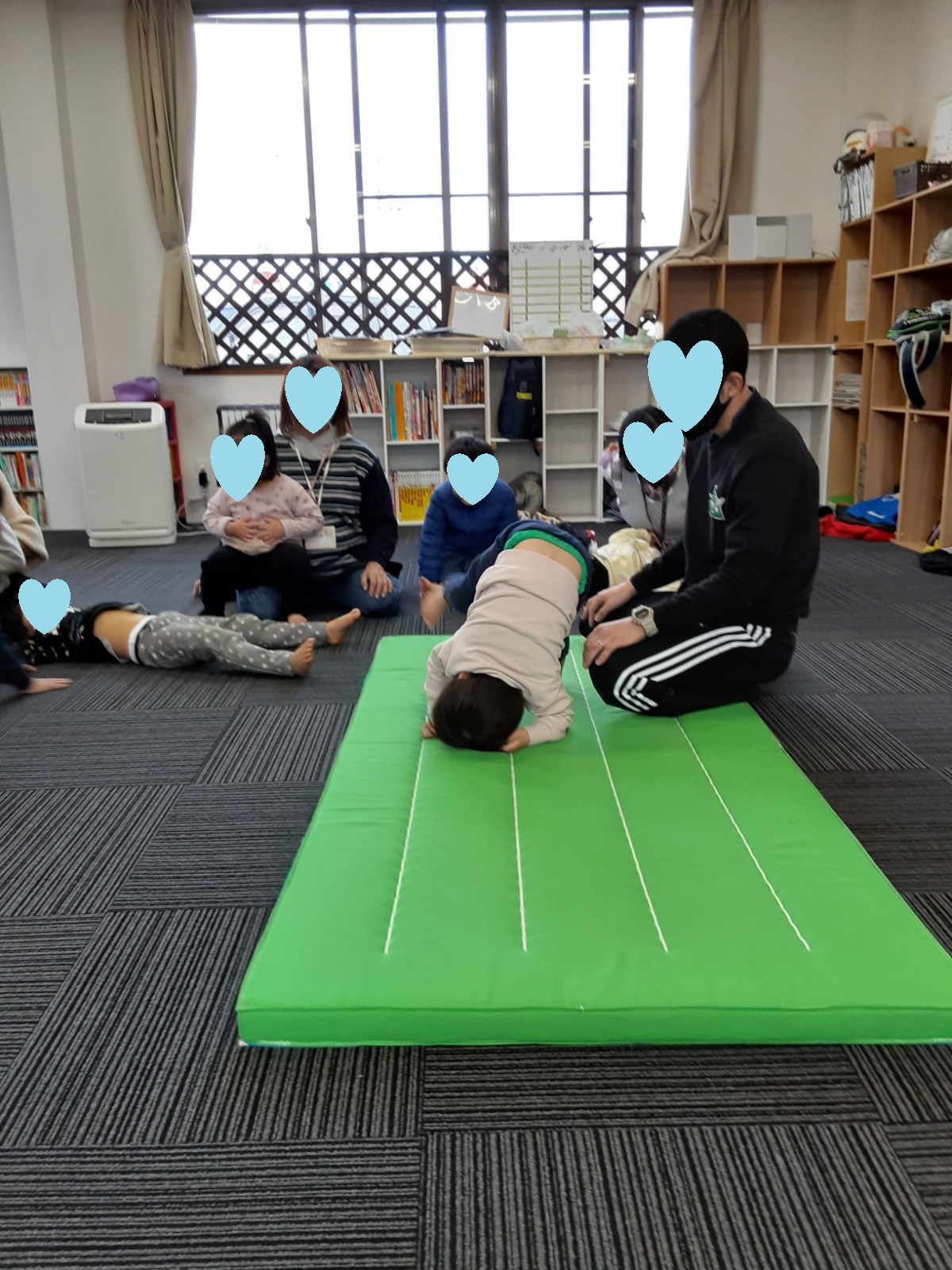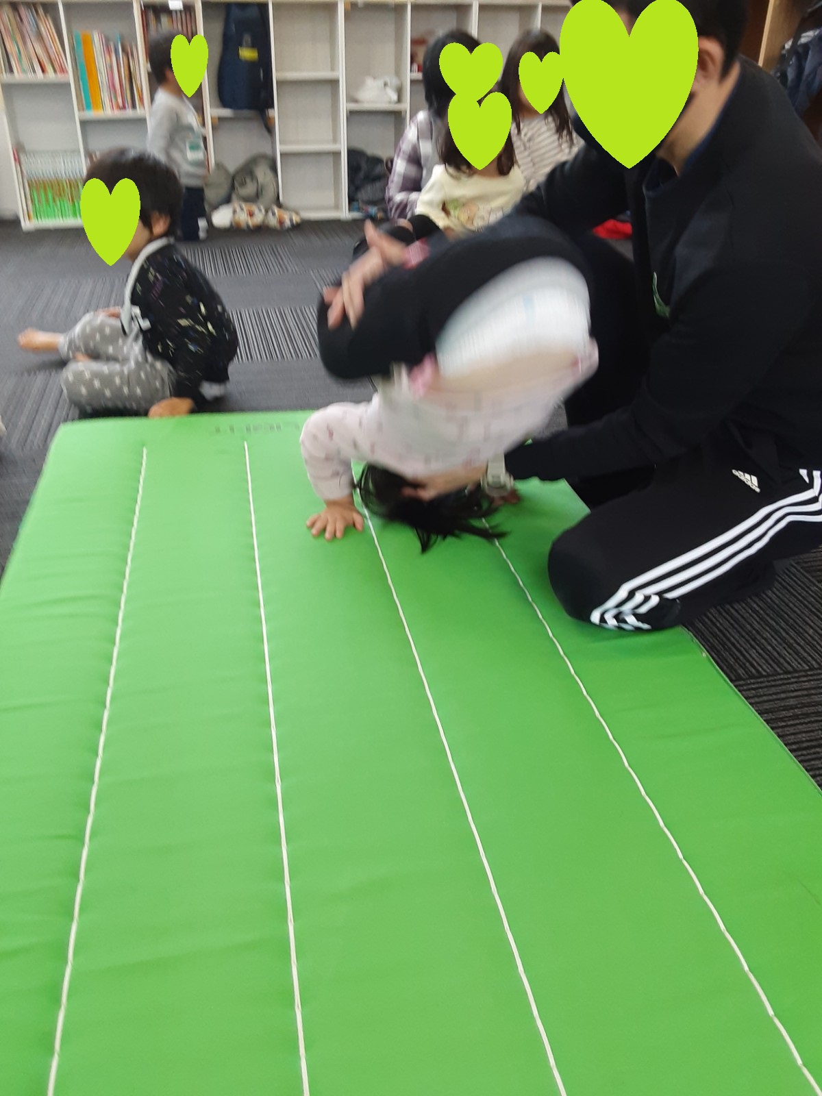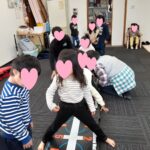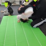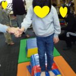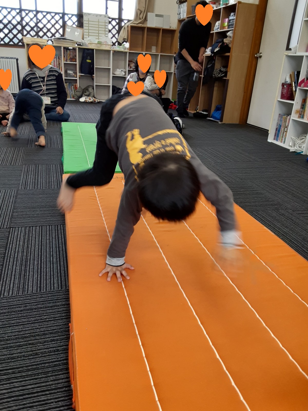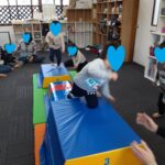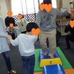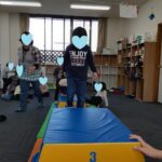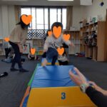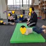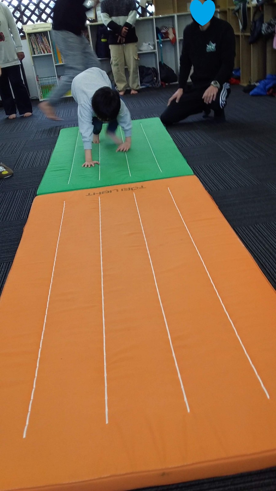 マット運動では、スタッフとコーチや子供たちも参加して足の間をくぐる運動をしました(^^♪