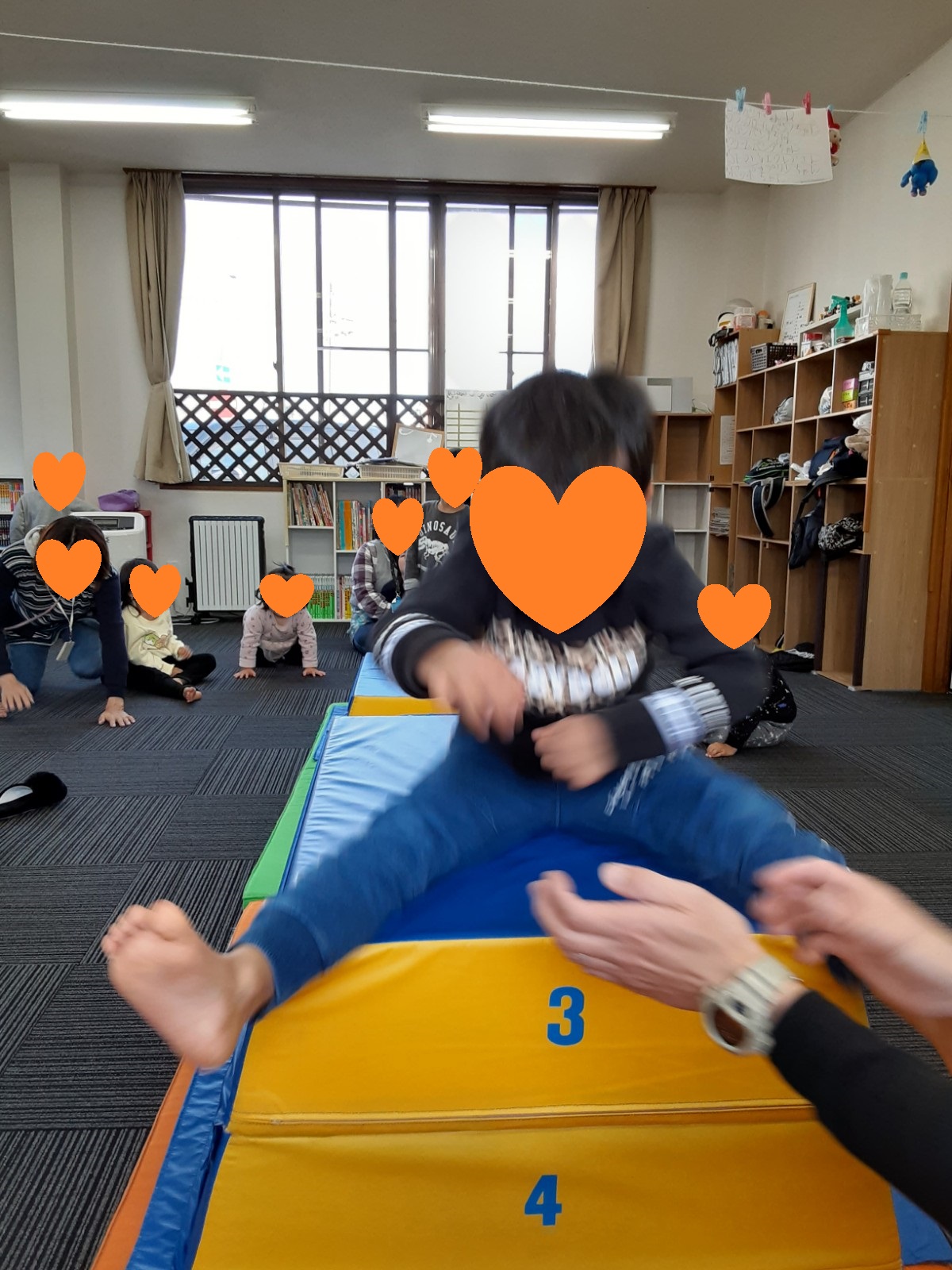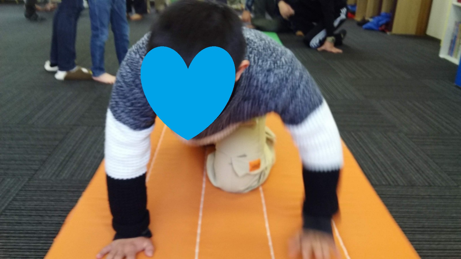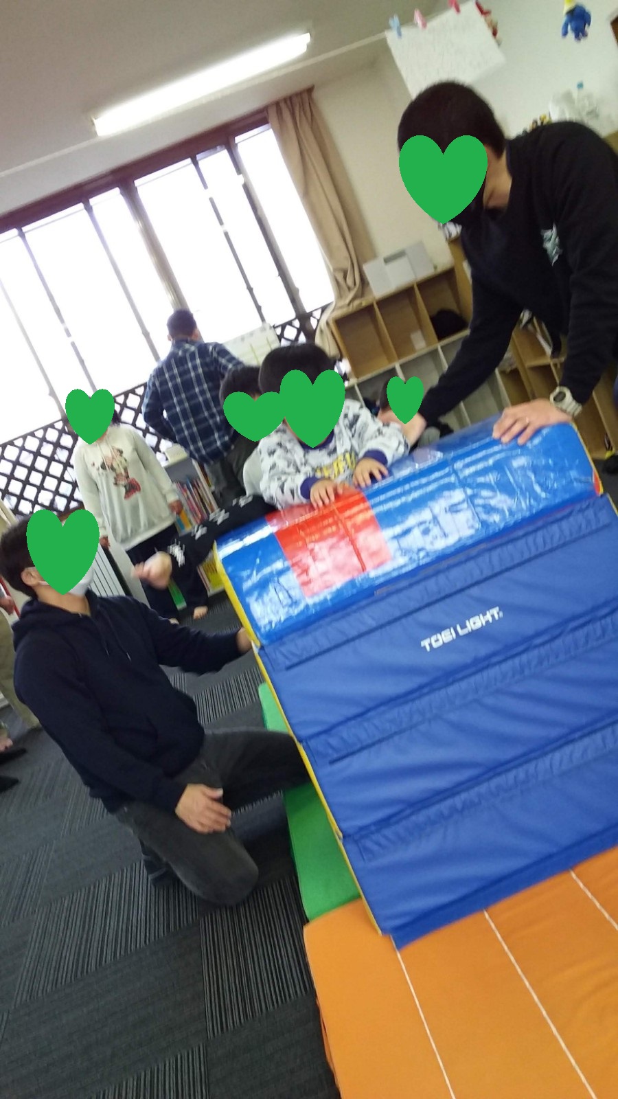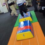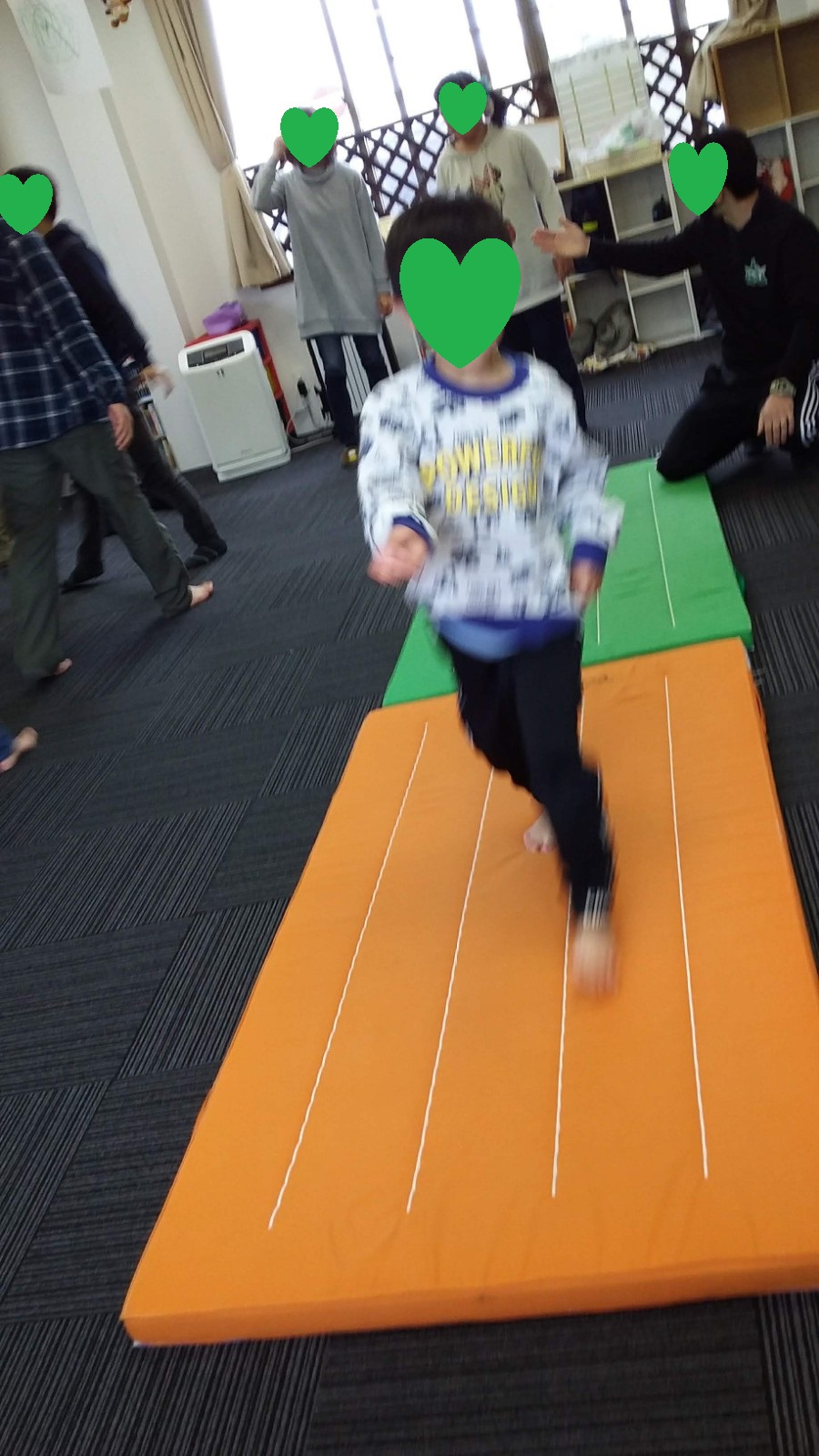 マット運動では、スタッフとコーチや子供たちも参加して足の間をくぐる運動をしました(^^♪