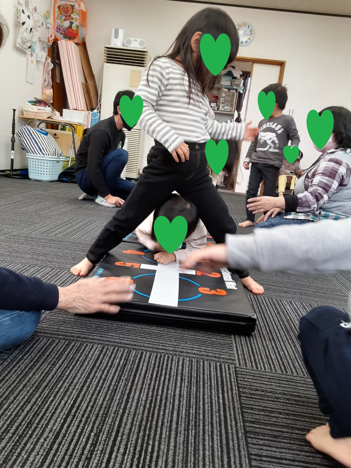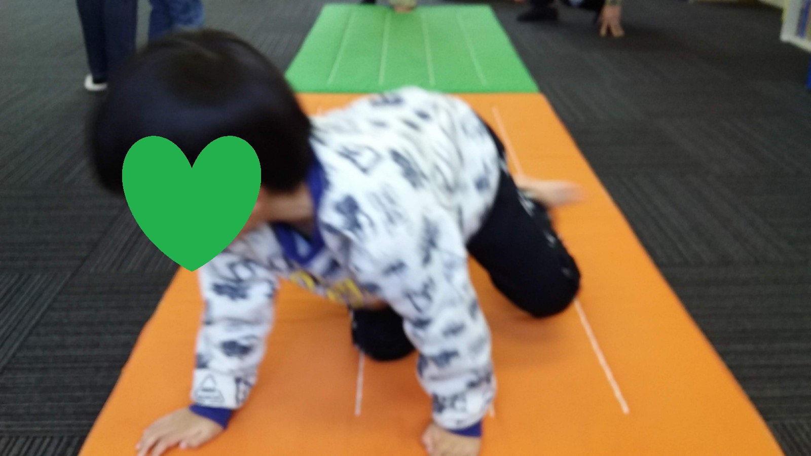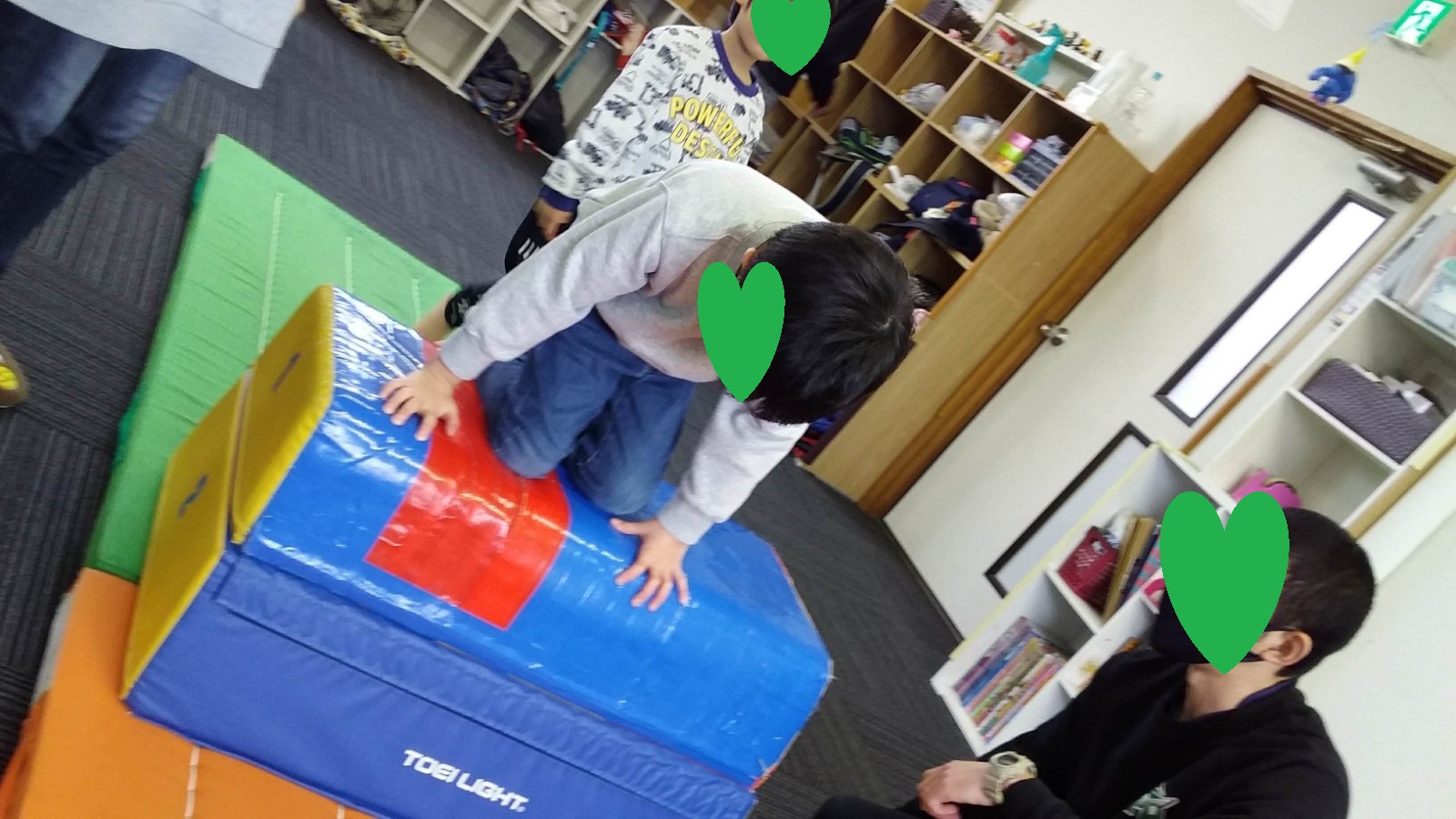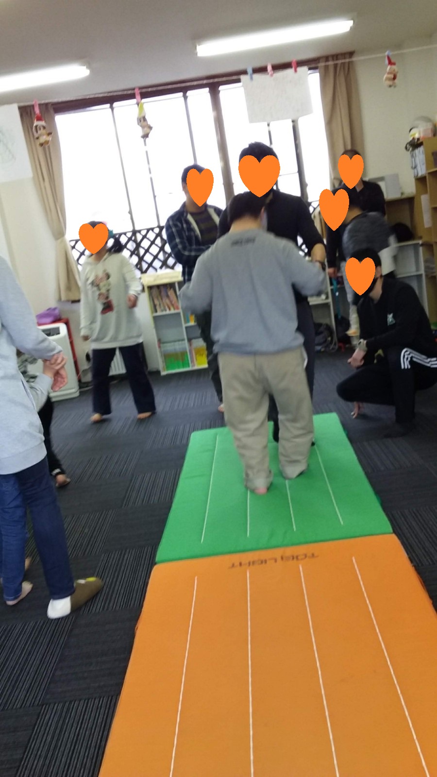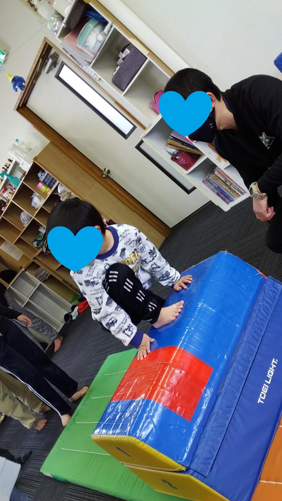マット運動では、スタッフとコーチや子供たちも参加して足の間をくぐる運動をしました(^^♪