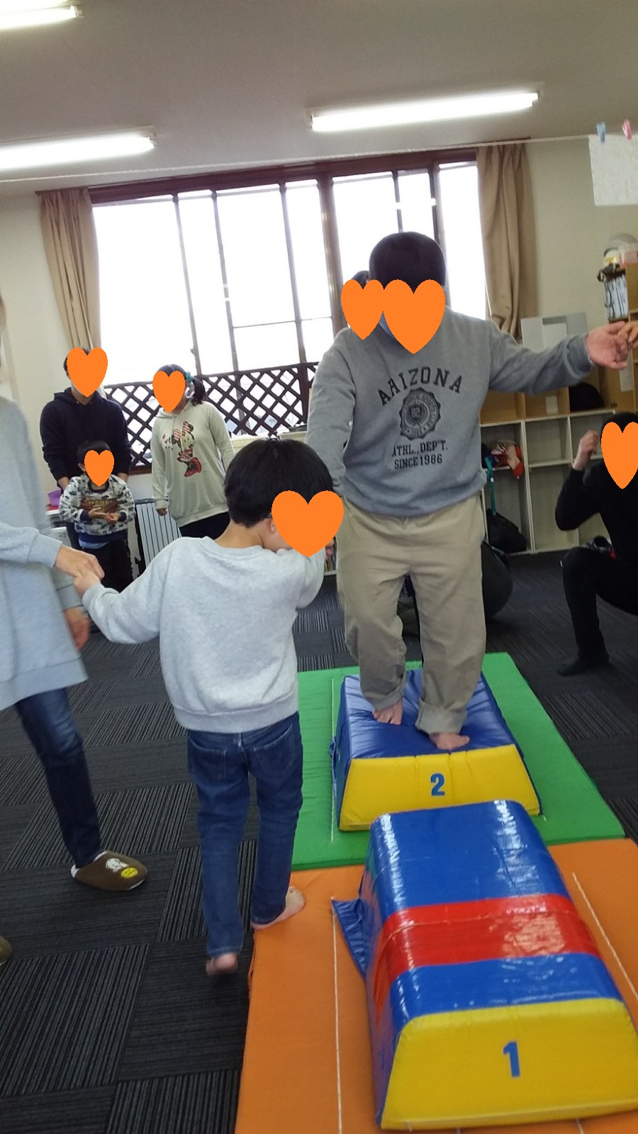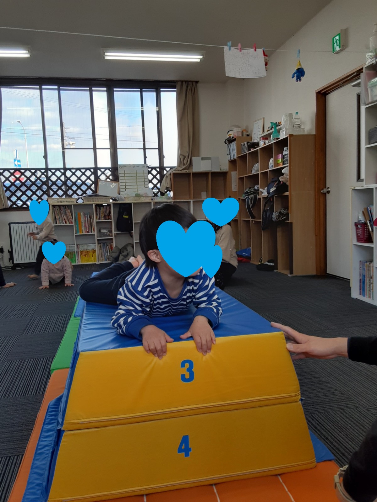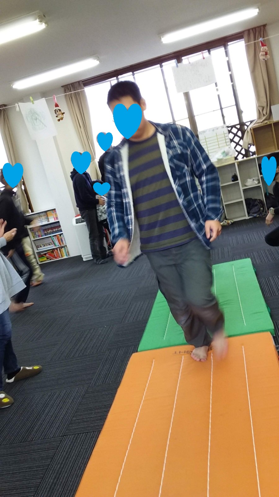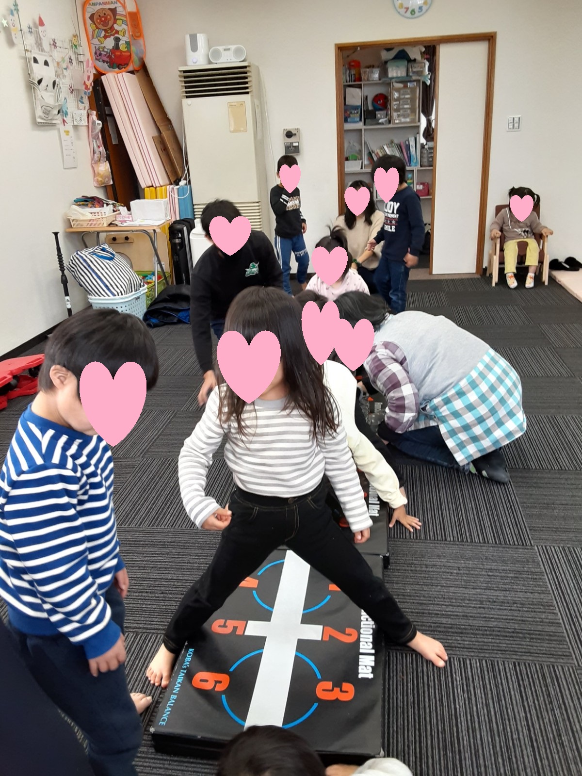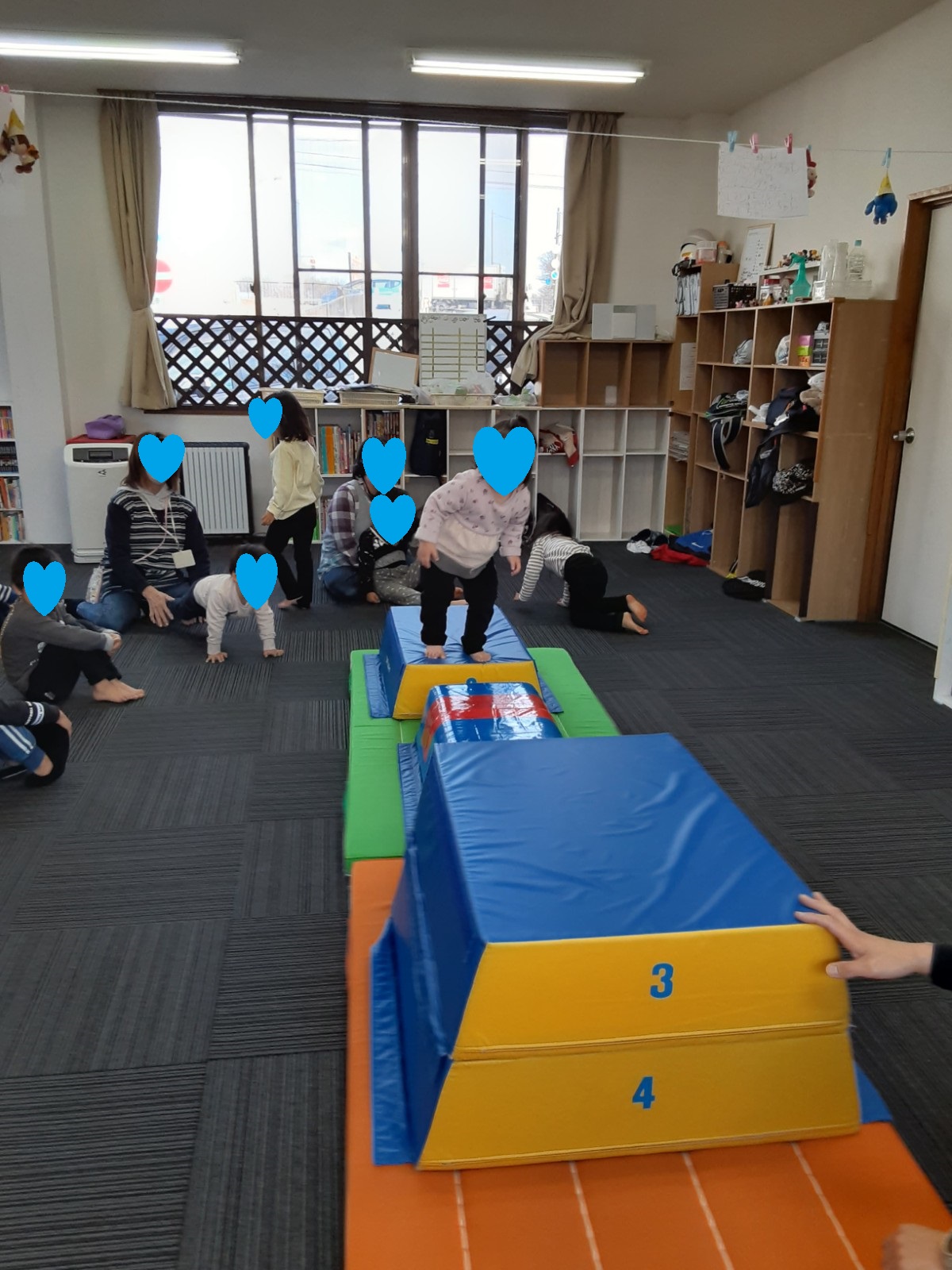 マット運動では、スタッフとコーチや子供たちも参加して足の間をくぐる運動をしました(^^♪