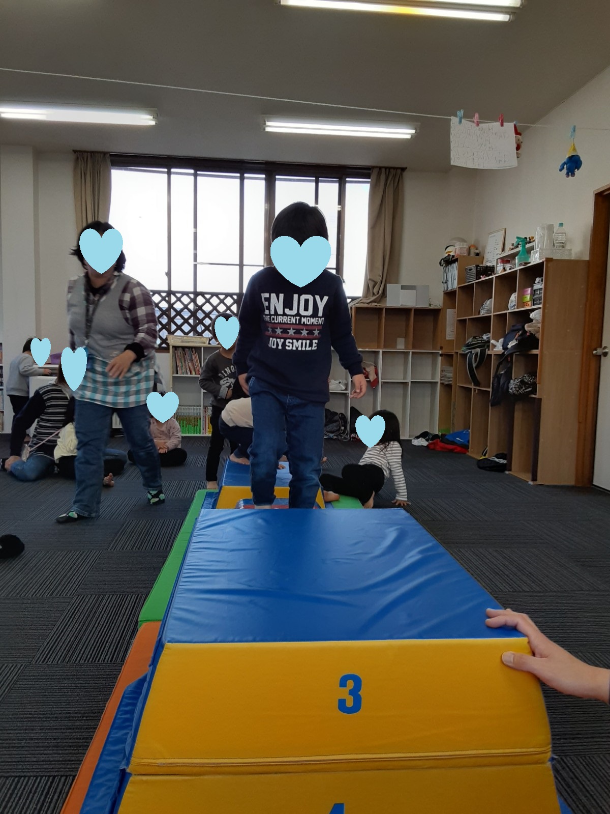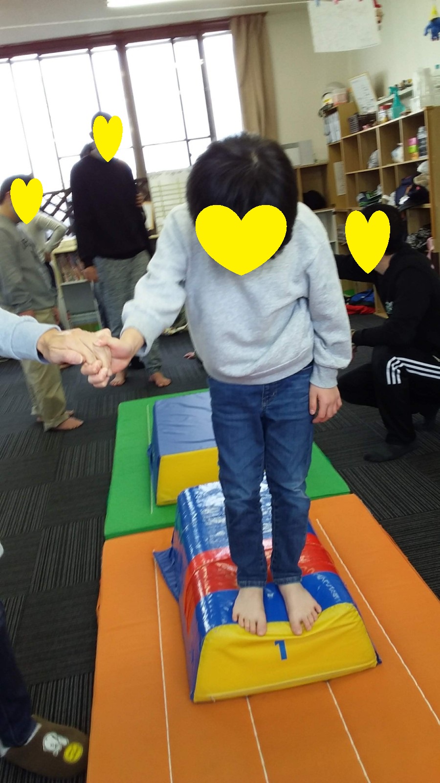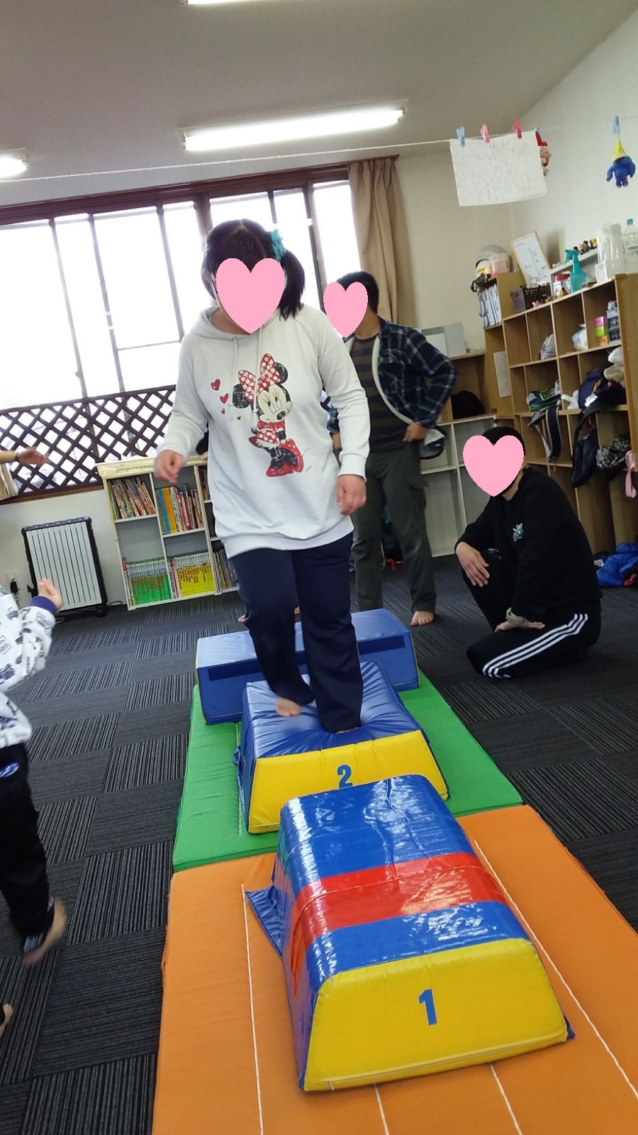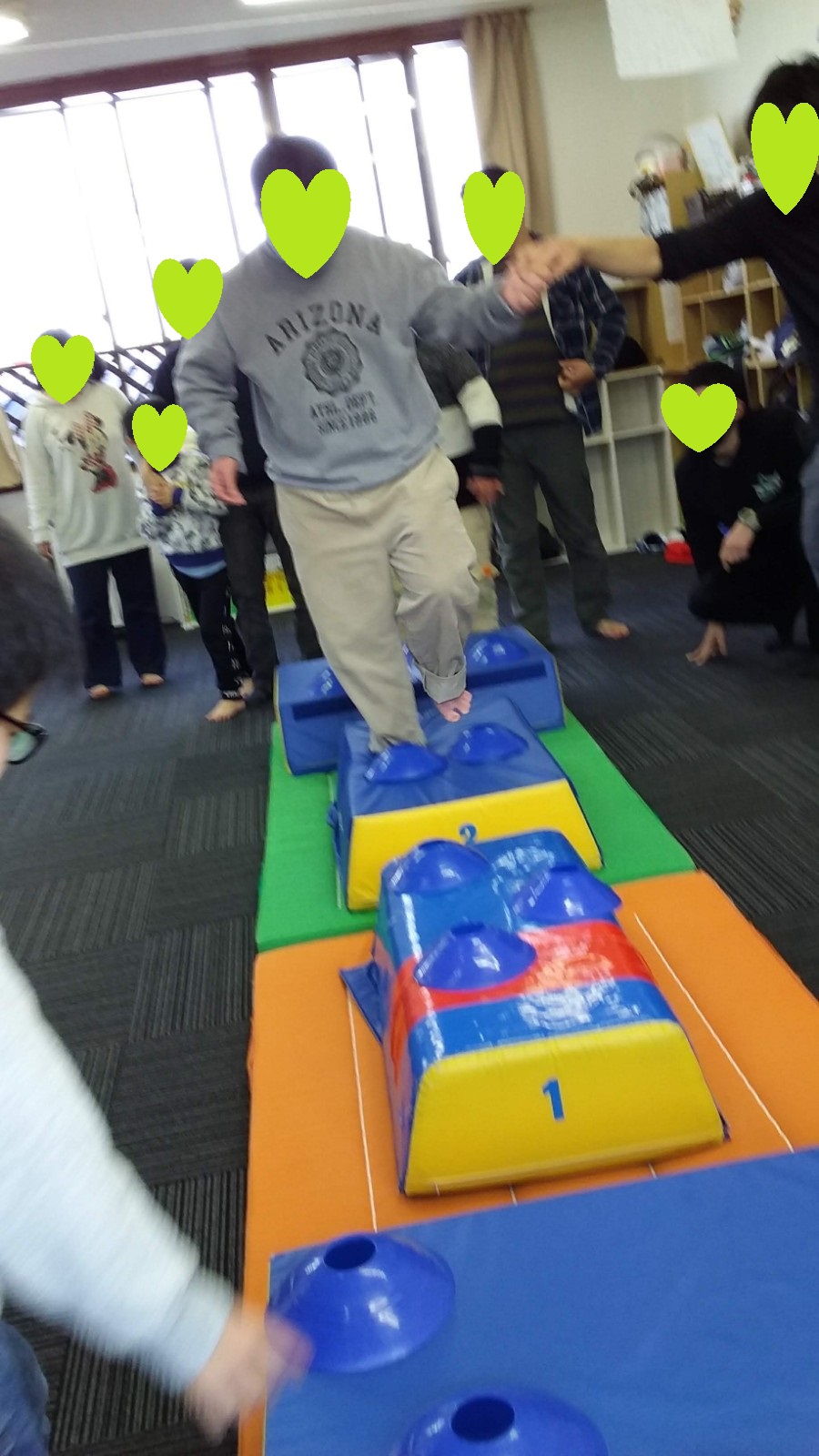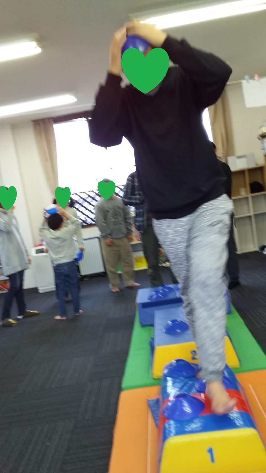 マット運動では、スタッフとコーチや子供たちも参加して足の間をくぐる運動をしました(^^♪