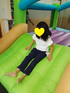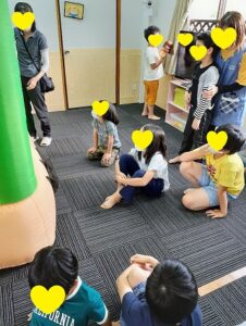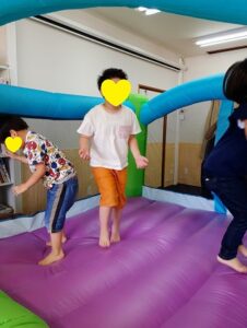 みんなでシートを広げて、空気を入れて膨らませます🎈