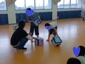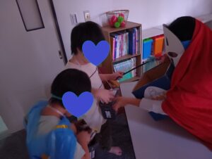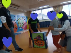みんなで仮装して順番にお菓子のつかみ取りをしました😀